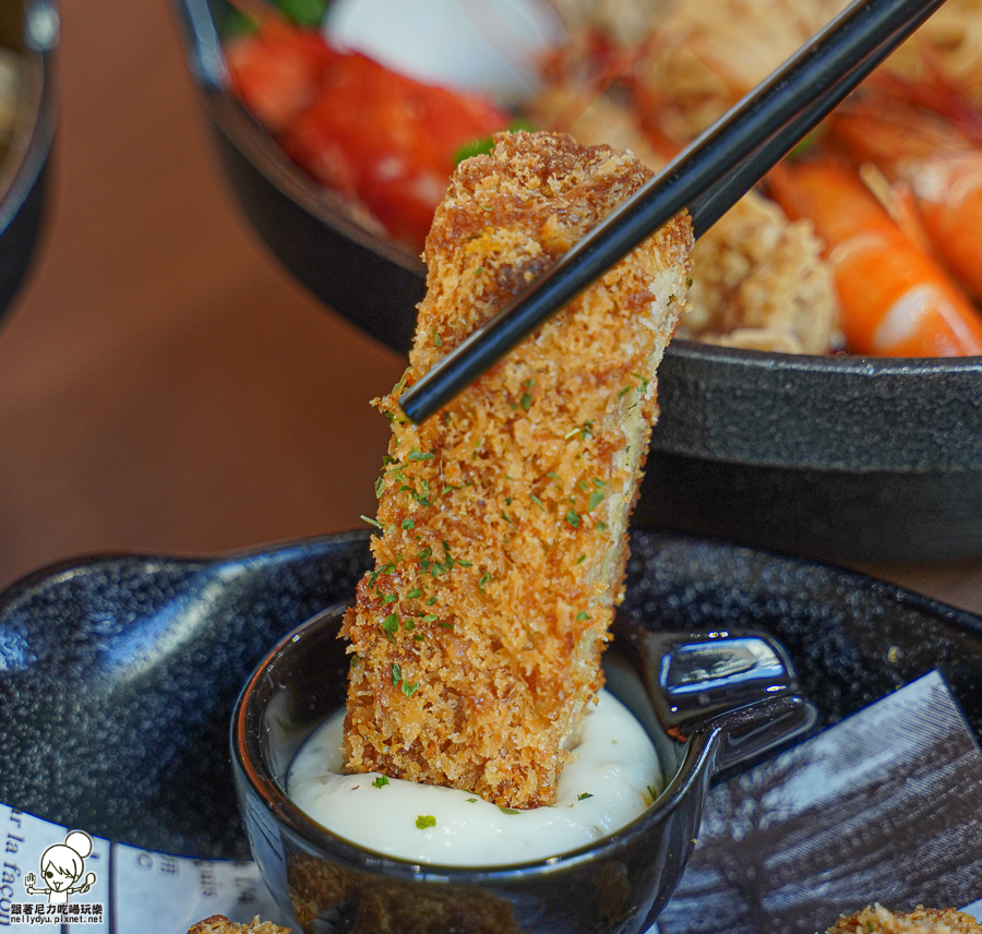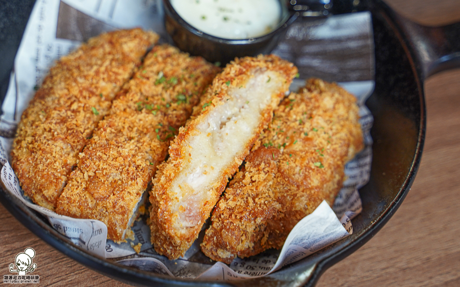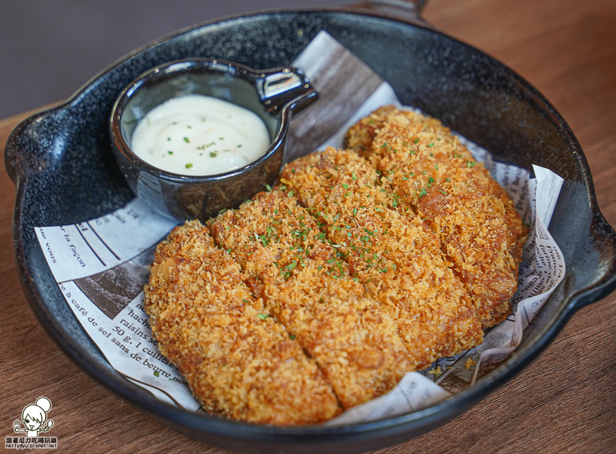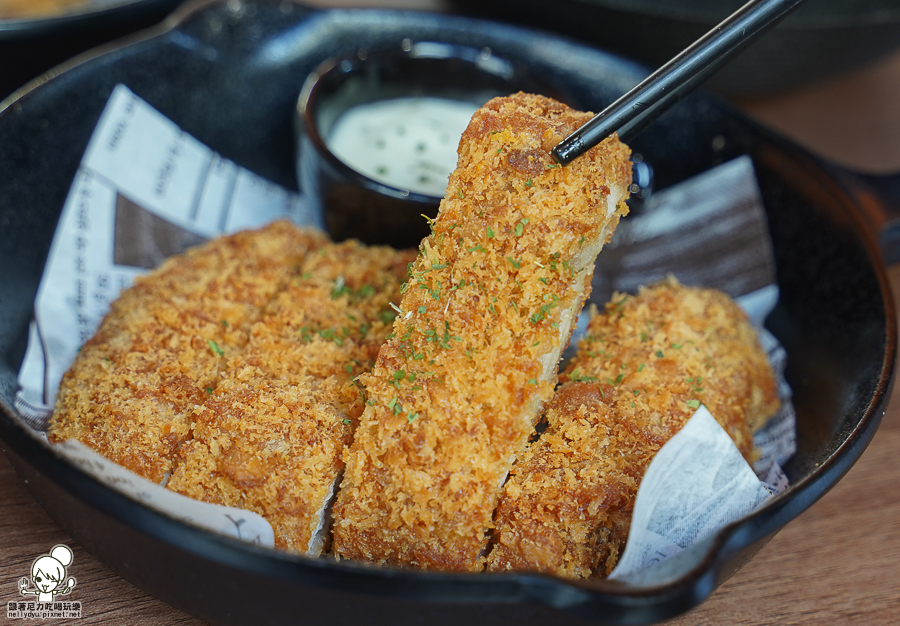 沾上特製塔塔醬,帶有甜味滋潤、讓炸物順口不燥熱
