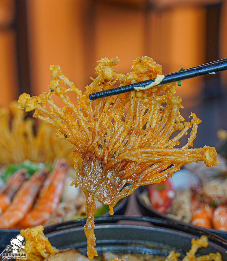 帶有拉麵魂的鍋燒美食,湯頭不馬虎,加上綻放開來的酥炸金針菇