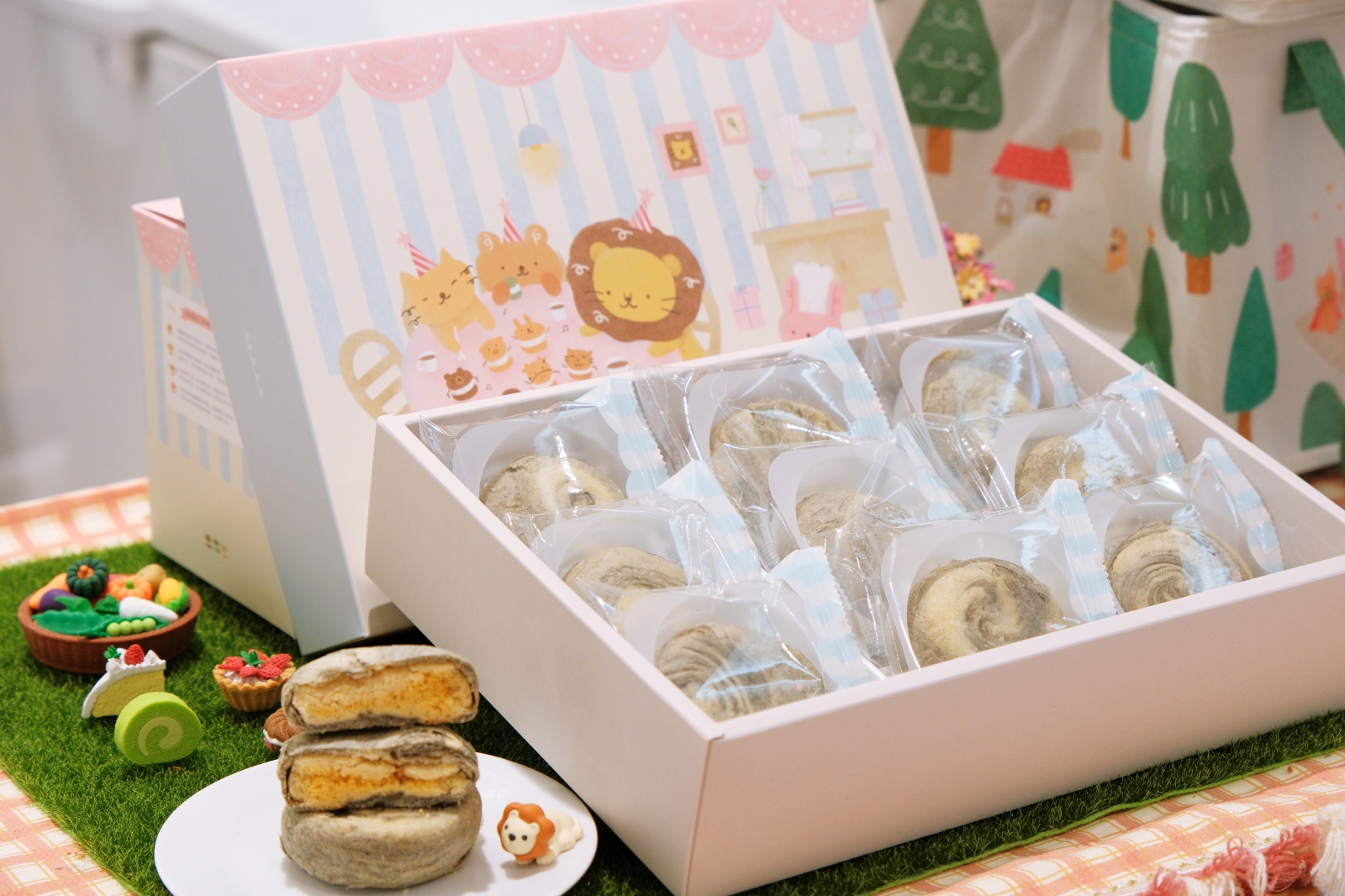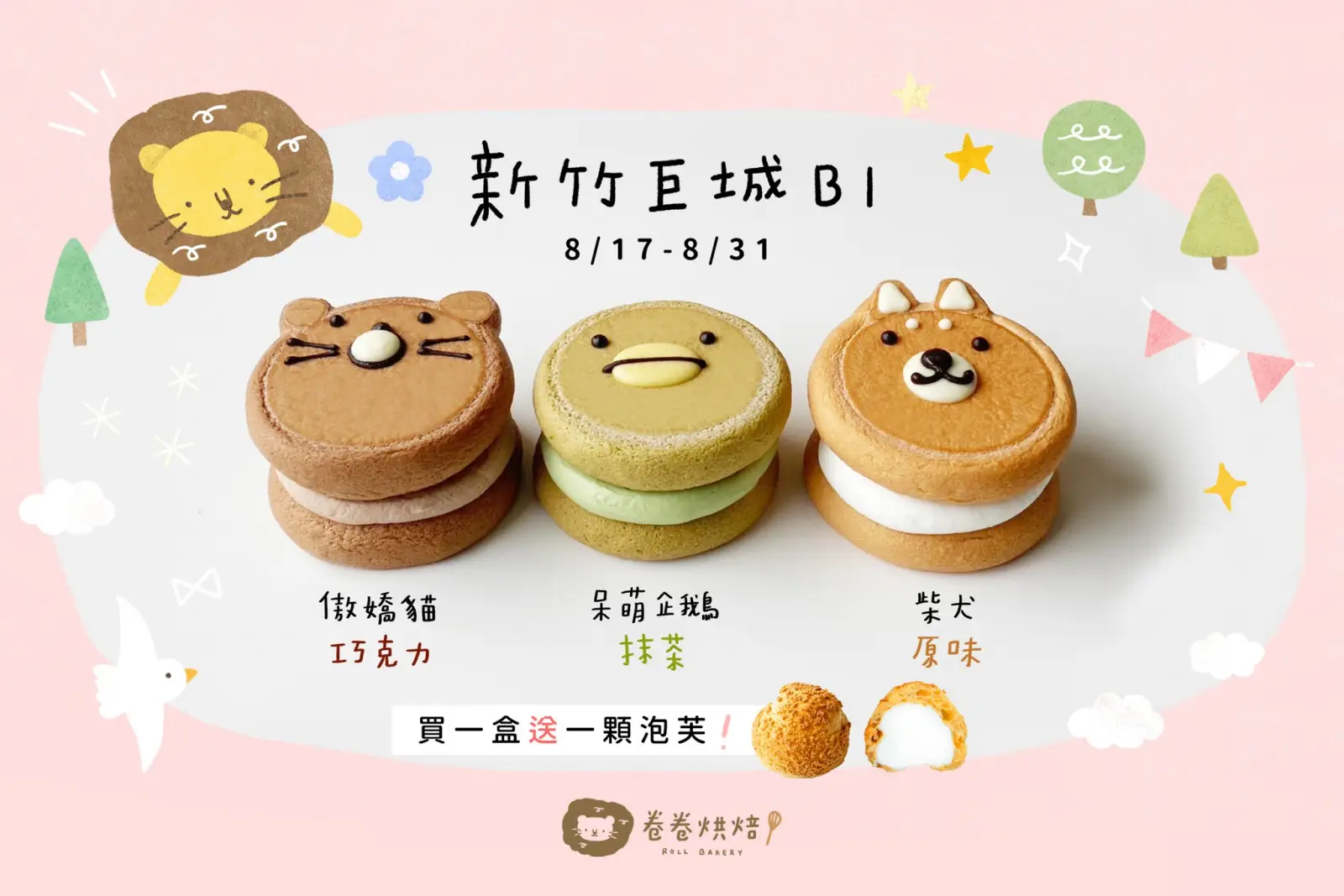 注意到卷卷烘焙時,是被臉書朋友上傳一張整盒的「樂虎生乳銅鑼燒」的照片所吸引,但去官網查詢門市都不在家裡附近,也湊不到免運門檻所以作罷。最近卷卷烘焙來到新竹巨城購物中心設快閃櫃就方便多了,省下的冷凍運費可以多吃好幾個銅鑼燒呀!(誤)這次的期間限定快閃,一樣帶來可愛造型的人氣銅鑼燒與新口味,還有最能代表老闆心境的「烏日餅」。購買九入銅鑼燒或九入烏日餅,都會贈送一顆北海道生乳泡芙,若吃不完,也可以購買四入裝銅鑼燒嚐鮮,還有可愛的外盒讓你提回家!