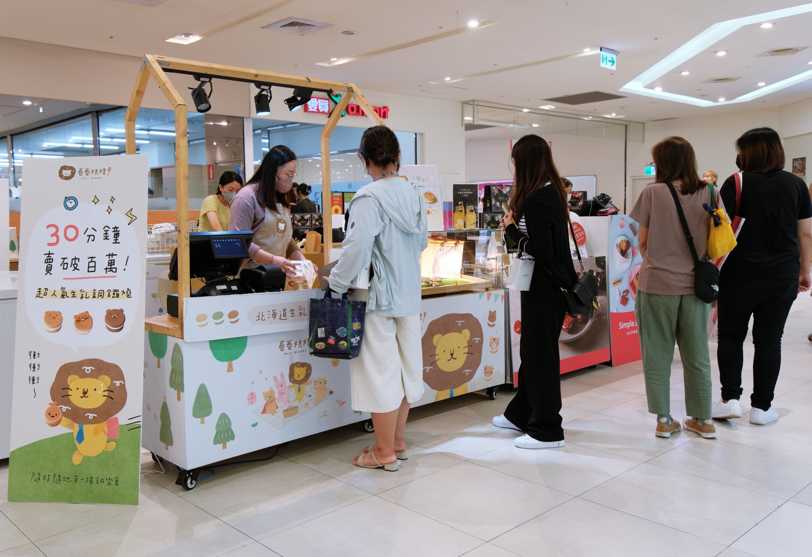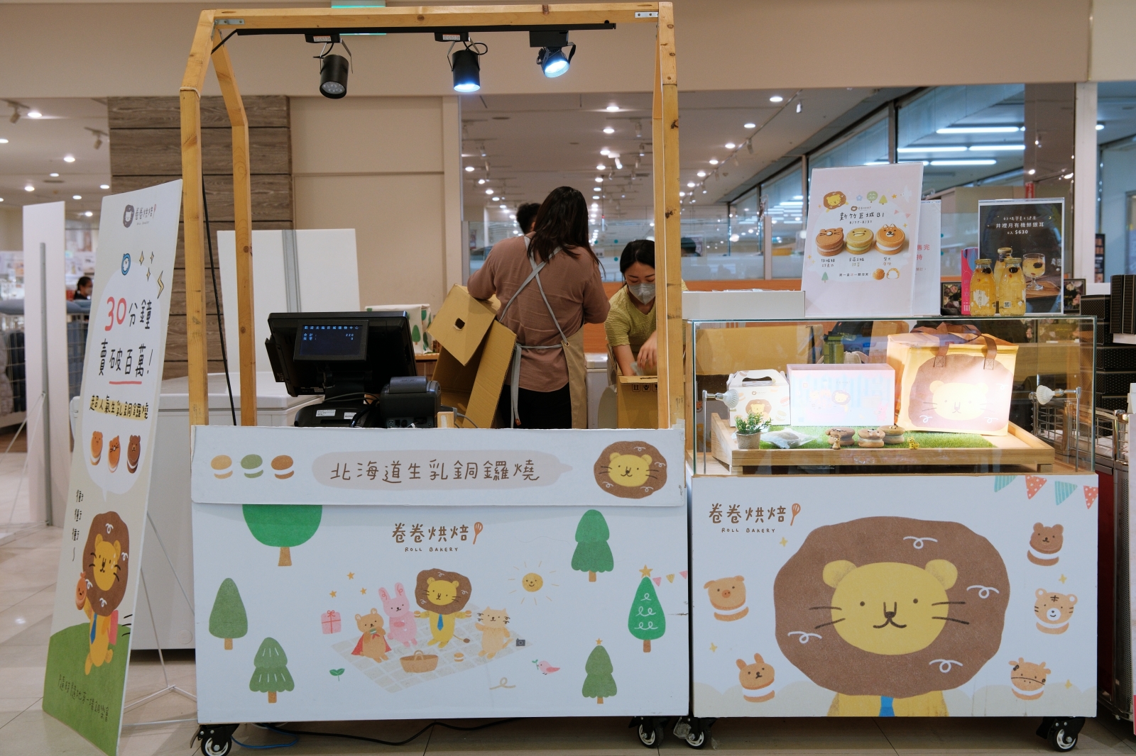 ▼從地下室走出停車場搭電梯上樓到 B1 ,先找到全家便利商店,就能找到卷卷烘焙快閃櫃位。逛巨城這麼多年,他們引進的櫃位、店家都很跟得上流行,很會挖掘全國新興名店來設櫃,能進入巨城設櫃多少都有一定的實力。