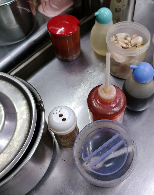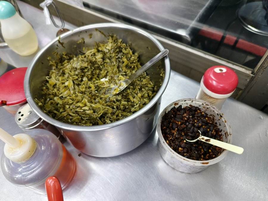 ▼桌面放有酸菜、蔭豆鼓、胡椒、辣油、醋等調味料,有需要的朋友都可以自行取用!