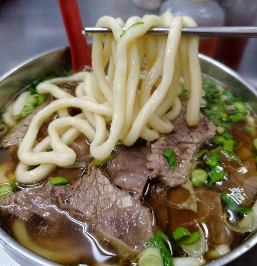 ▼細麵吃起來Q滑帶有嚼勁,這才是我們心目中好吃的牛肉麵麵條啊~~原來要吃細麵才對!!