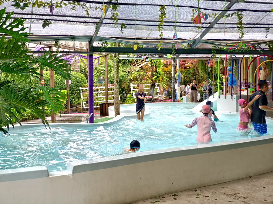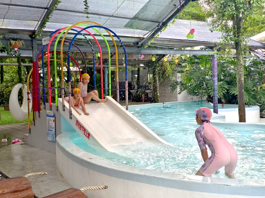 ▼溜滑梯旁邊就是小朋友最愛的戲水池,不過記得要穿著泳裝、泳帽才能下水玩耍唷!