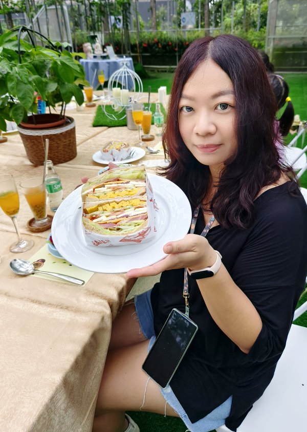 ▼採用全麥土司搭配生菜、煙燻肉片、紫甘藍、起司、番茄、小黃瓜、蛋、筊白筍等,豐富的配料搭配百香果醬吃起來很有層次感,整體清爽又無負擔!