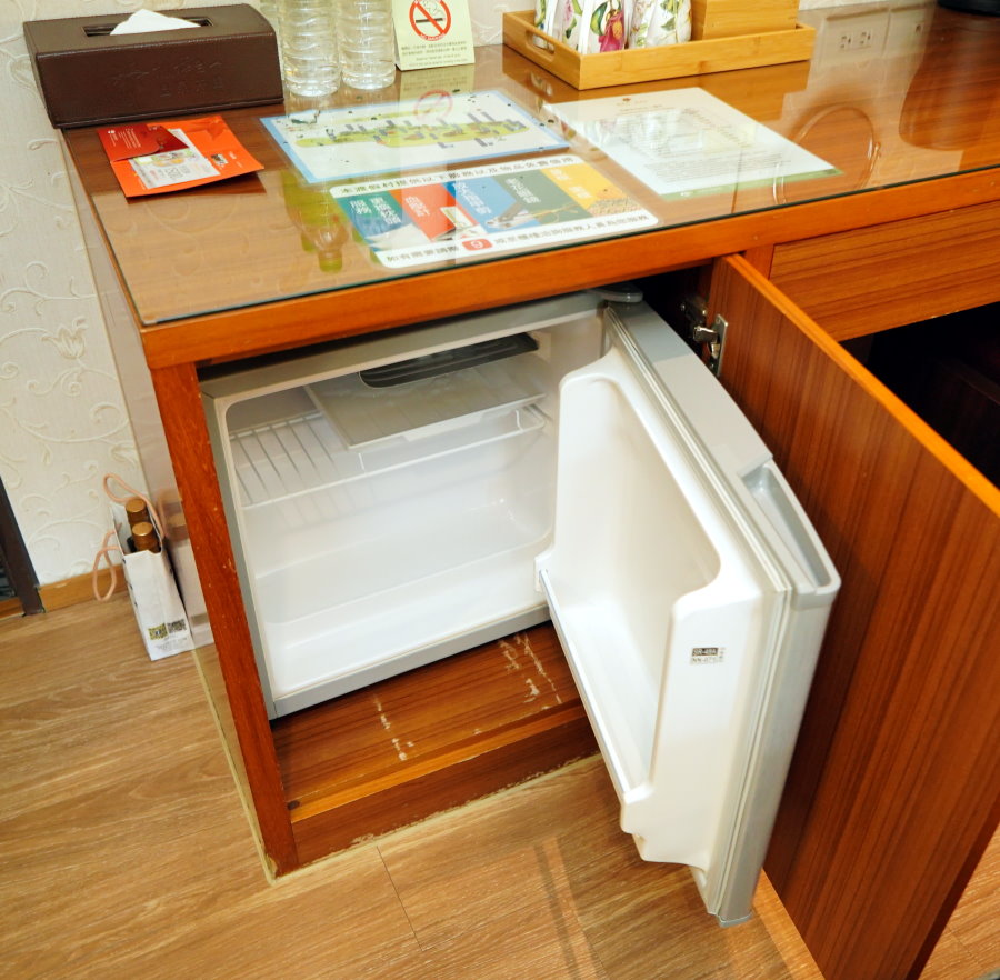 ▼桌子下方藏有小冰箱,有提供冷藏也有冰塊盒方便大家使用!