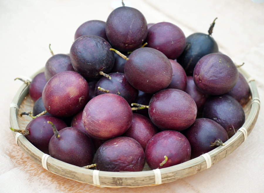 ▼桌上放有一大藍的百香果,想吃的朋友也可以自行取用!