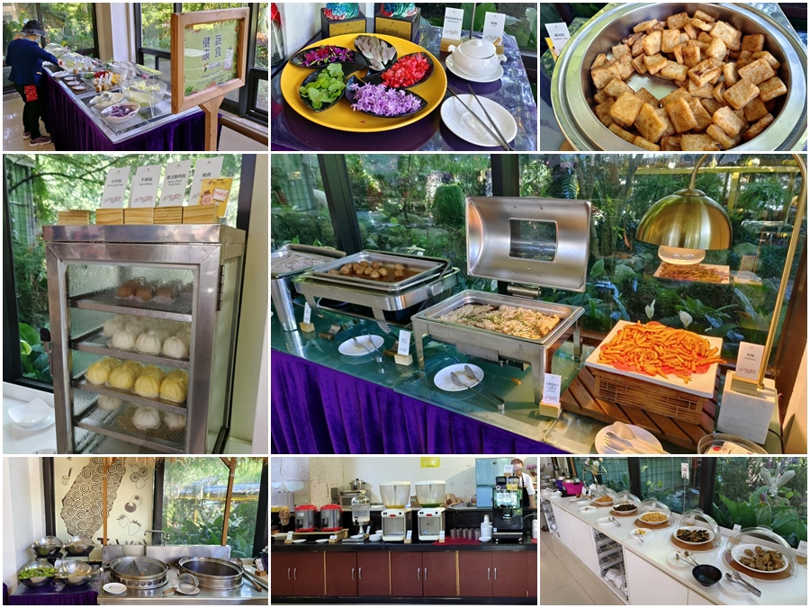 ▼早餐採自助式用餐方式,提供的餐點比較偏中式料理,有包子饅頭、清粥、蘿蔔糕、炸物、炒時蔬、蒸蛋等,還有現燙擔仔麵,選擇多元豐富~另外也有沙拉、水果、飲料、咖啡等,包準可以吃得很飽足!