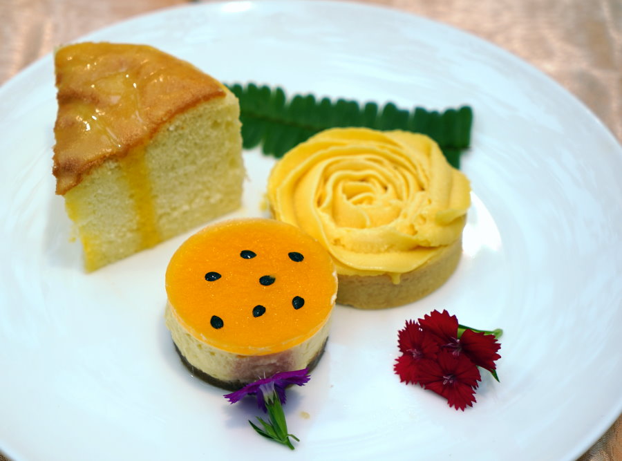 ▼最後是甜點時間,包括百香果塔、糖霜百香果蛋糕、百香果慕斯,光看擺盤就讓人少女心大開,整個捨不得吃下肚啊!