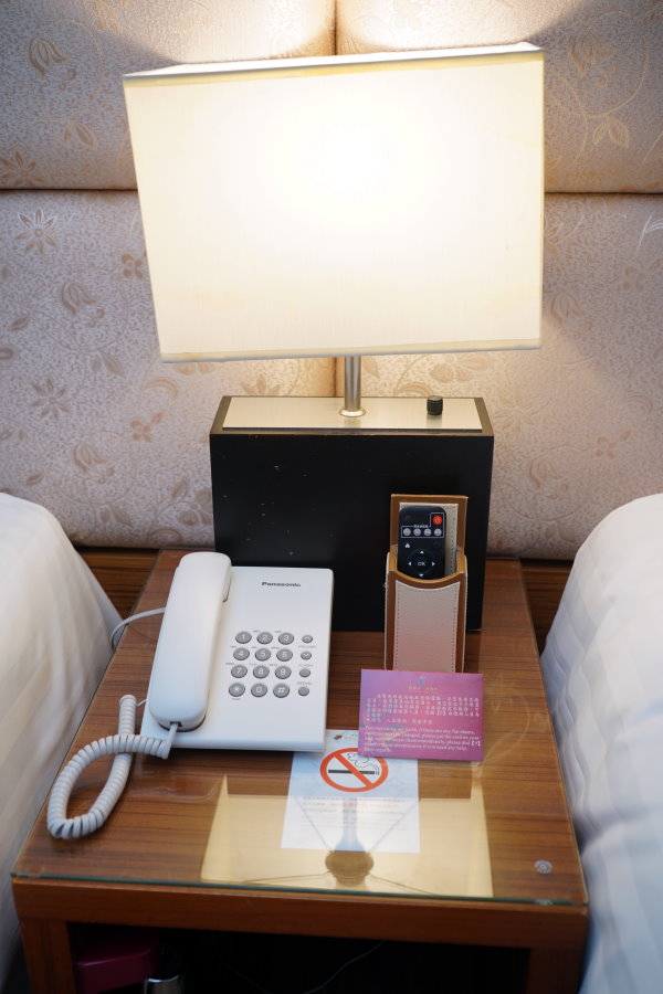 ▼床頭櫃有檯燈、遙控器、電話等,檯燈晚上也可以當作小夜燈使用!