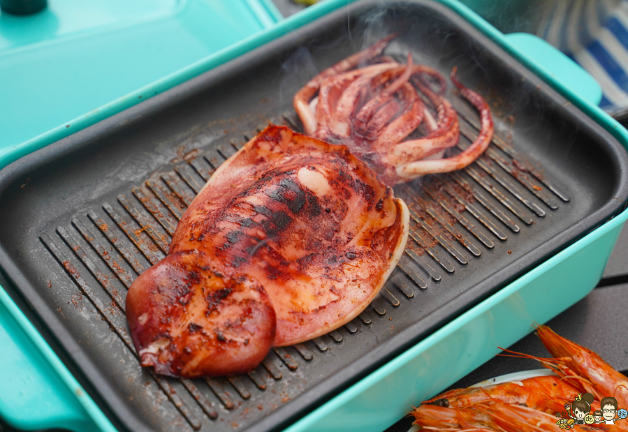 不僅晚上可以烤肉,早餐肉片加蛋吐司、煮麵也可以升級加入白蝦海鮮