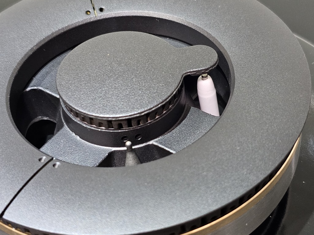 取下爐頭後,還有防漏湯盤,如果烹煮湯汁溢出,都會在這邊集中,平整的設計也更好擦拭,不易藏污納垢。整個爐台清潔就是這麼容易輕鬆,一個禮拜清理一次或是大料理完清潔,都非常愜意。