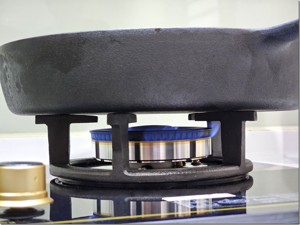 高效爐頭設計有著能效二級認證,就像是爐架加熱不直接的位置,就沒有出焰,除了不會造成高廢氣外,更省瓦斯,也能將能源發揮到最有效率的地方。
