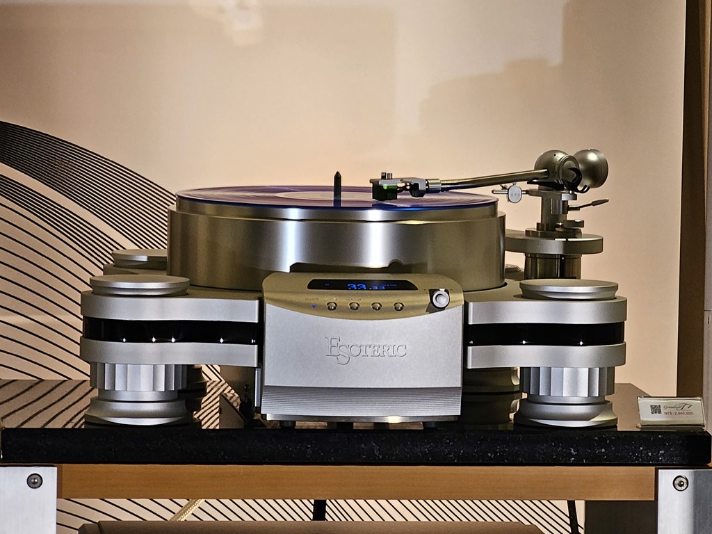 而勝旗音響也帶來 Esoteric 首款類比唱盤 Grandioso T1,以非接觸式的磁浮系統,搭配 VCXO 馬達驅動,達成精準且安靜的轉動,可支援 33/45 轉兩種速度,並可以 1% 為單位微調轉速。