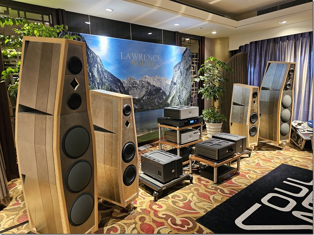 而台灣本土知名音響品牌 Lawrence Audio,與知名音響系統 SoulNote 偕同展出,Lawrence Audio 特別以旗艦落地音響 Sun 進行展演。Sun 中高音採用中高中音排列,達成一致相位完美揉合音路。高音單體採用鑽石鍍膜,高音透明度相當迷人,而中音採用陶瓷單體、低音為鋁合金凸盆,有著快捷又兼具力道的舒服低音感受,聆聽壓迫感低,空氣感十足,如同在音樂廳中感受演出般,真實還原該有的聲響。