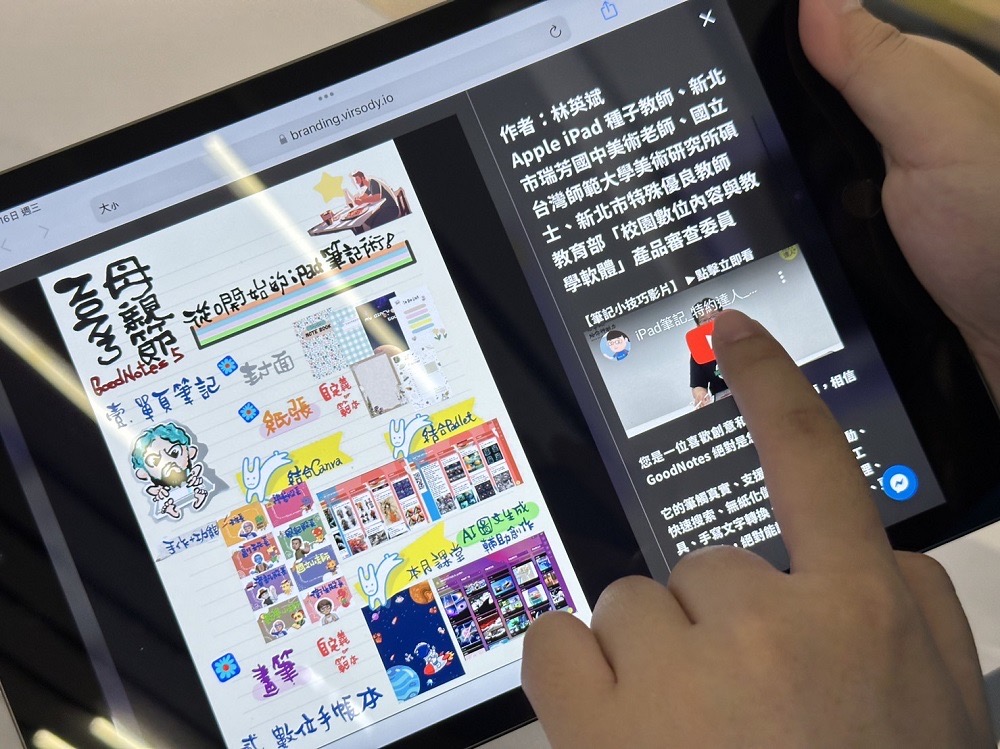 本次數位線上展聚焦於使用 iPad 和 Apple Pencil 進行筆記的高效筆記法、創意應用,開展現場特別邀請到了來自不同領域的三位達人創作者分享他們的經驗和技巧。第一位達人創作,來自新北市瑞芳國中美術老師的林英斌,身兼 Apple iPad 種子教師和新北市特殊優良教師,他分享了在教育領域中運用數位筆記的精彩案例,第二位是著名 YouTuber 經營「BPW 學習日誌」頻道,目前就讀於台灣大學的 BPW,(分享從紙本筆記,轉成用 iPad 與 Apple Pencil 來寫筆記,學習成效翻倍,網路上分享自己的筆記心得廣後好評,並考上台大的成功經驗),以及第三位達人創作者:Kitty 分享在生活旅遊中如何創作生活手帳。