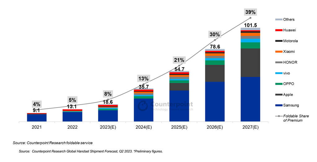 *全球摺疊手機與高階手機佔比 from Counterpoint