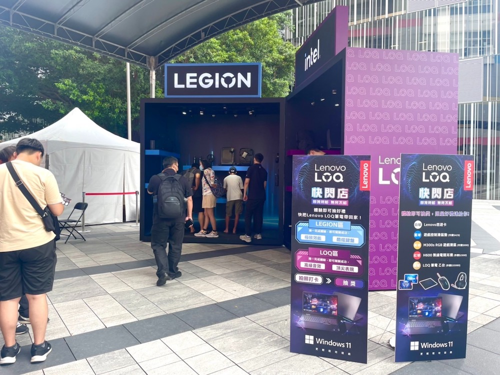 8 月 27 日前,Lenovo 電競快閃店插旗光華商場前廣場,賽博龐克設計打造夏日新地標,吸引遊戲愛好者齊聚。除了經典筆電機台,現場更展示耳機、後背包、水壺等周邊配件,為一級玩家搭配完整行頭。快閃店分為 Legion 及 LOQ 兩區,分別設置「極致效能」、「酷炫鍵盤」和「高級音效」、「頂尖表現」等四個體驗關卡,讓民眾親自感受 Lenovo 旗下電競機種優異的規格和遊戲效果,完成任一體驗並拍照打卡的消費者都有機會參加抽獎活動,並至專賣店兌換限量豪禮,包括 Lenovo LOQ 15”  Intel電競筆電(市價 NT35,990 元)、Legion H600無線電競耳機(市價 NT2,990 元)、Legion M300s RGB 電競滑鼠(市價 NT990 元)、Legion 電競滑鼠墊(市價 NT429 元)、悠遊卡等。