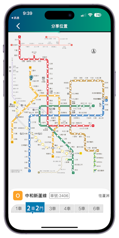 [▲ 不管是對方還是自己,只要點擊連結後就能看到自己搭乘的捷運與位置]