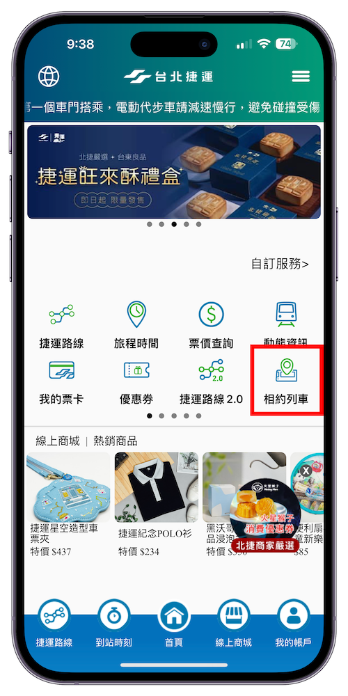 [▲ 打開「台北捷運GO」app 後選擇「相約列車」選項]