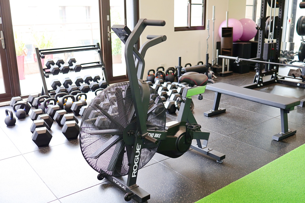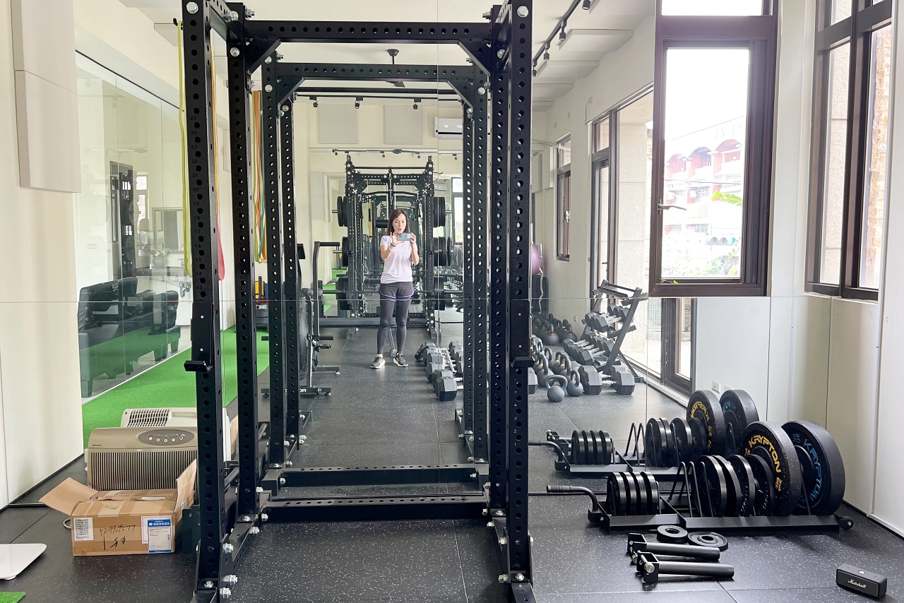 相較於一樓的大空間適合小團體的上課,二樓小空間就可以一對一教學。各種專業的重訓器材都有,還有風扇腳踏車可以做高效的心肺運動訓練。