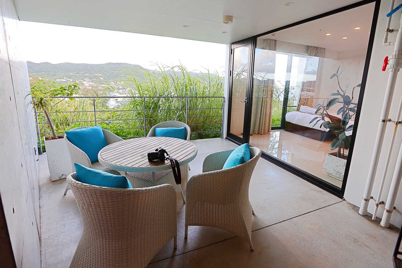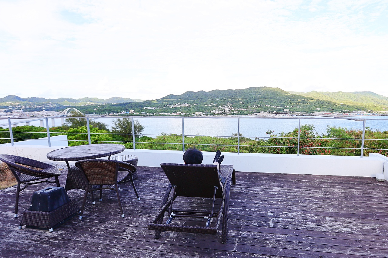 三樓露台區簡單的擺設躺椅,眼前就是一望無際的海景、山景,也可以看見瀨底大橋。由於villa位在小山坡上,旁邊樹林包圍著,隱密性極高。夜晚可以上來這裡欣賞夜空,因為無光害的優勢,還有機會看見銀河喔。