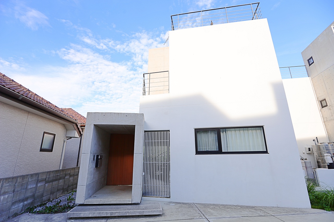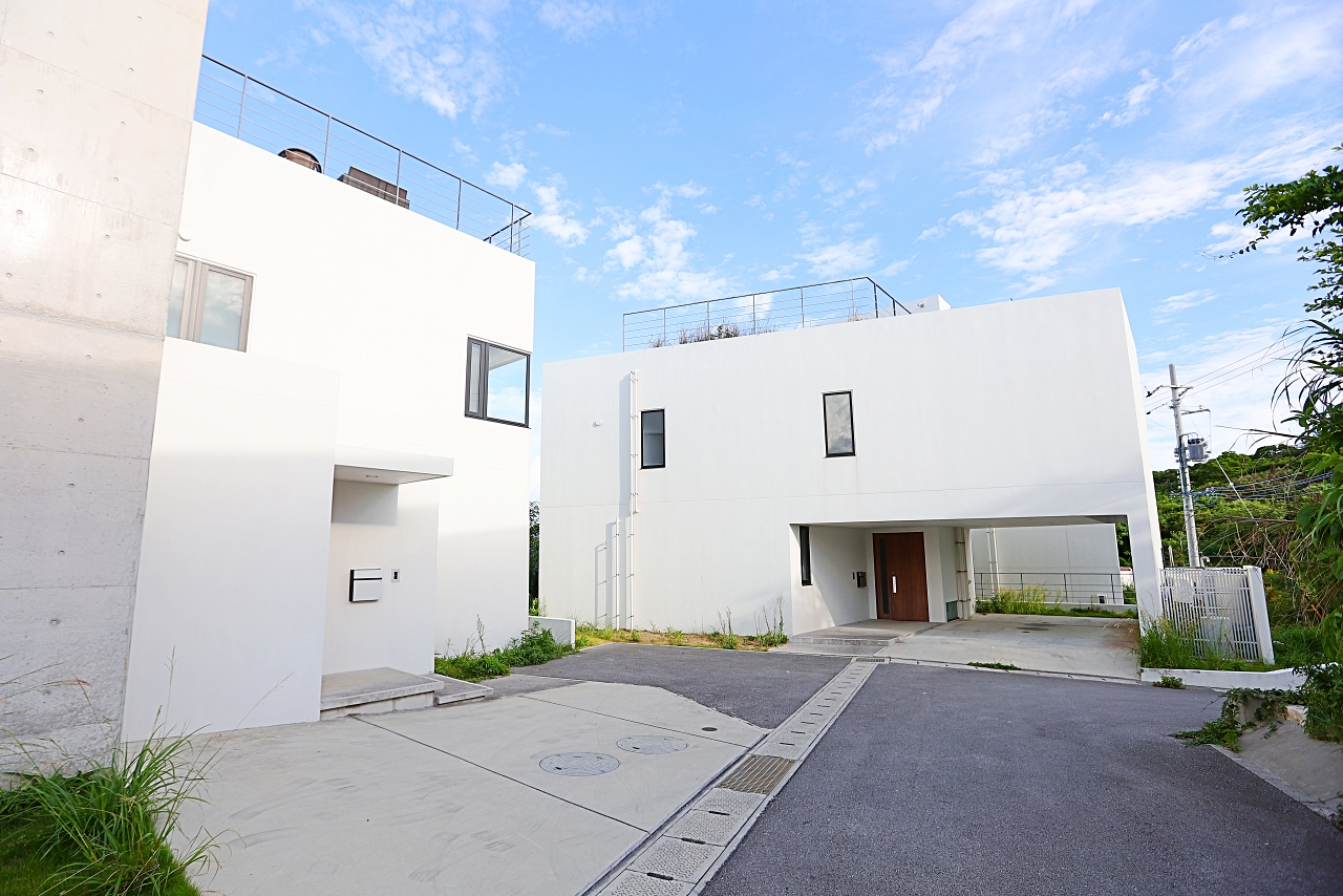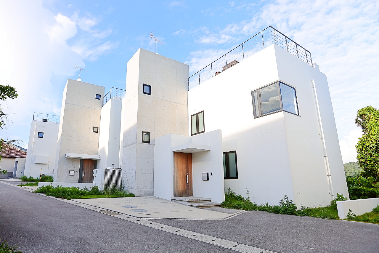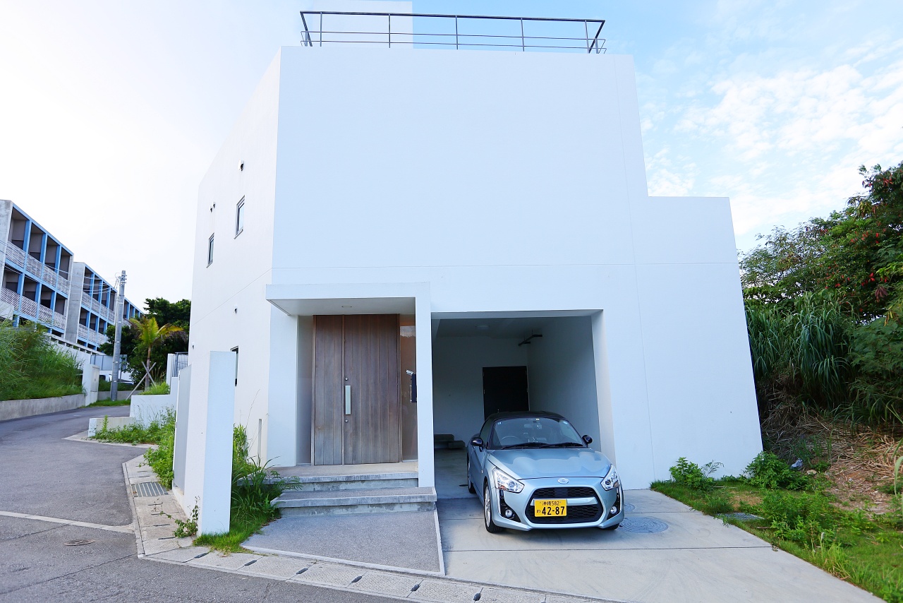 我跟小妞入住的是最靠近道路的A棟。車庫很大,可以同時停放兩台車。外觀純白色系的極簡風格,真是讓我們大愛!