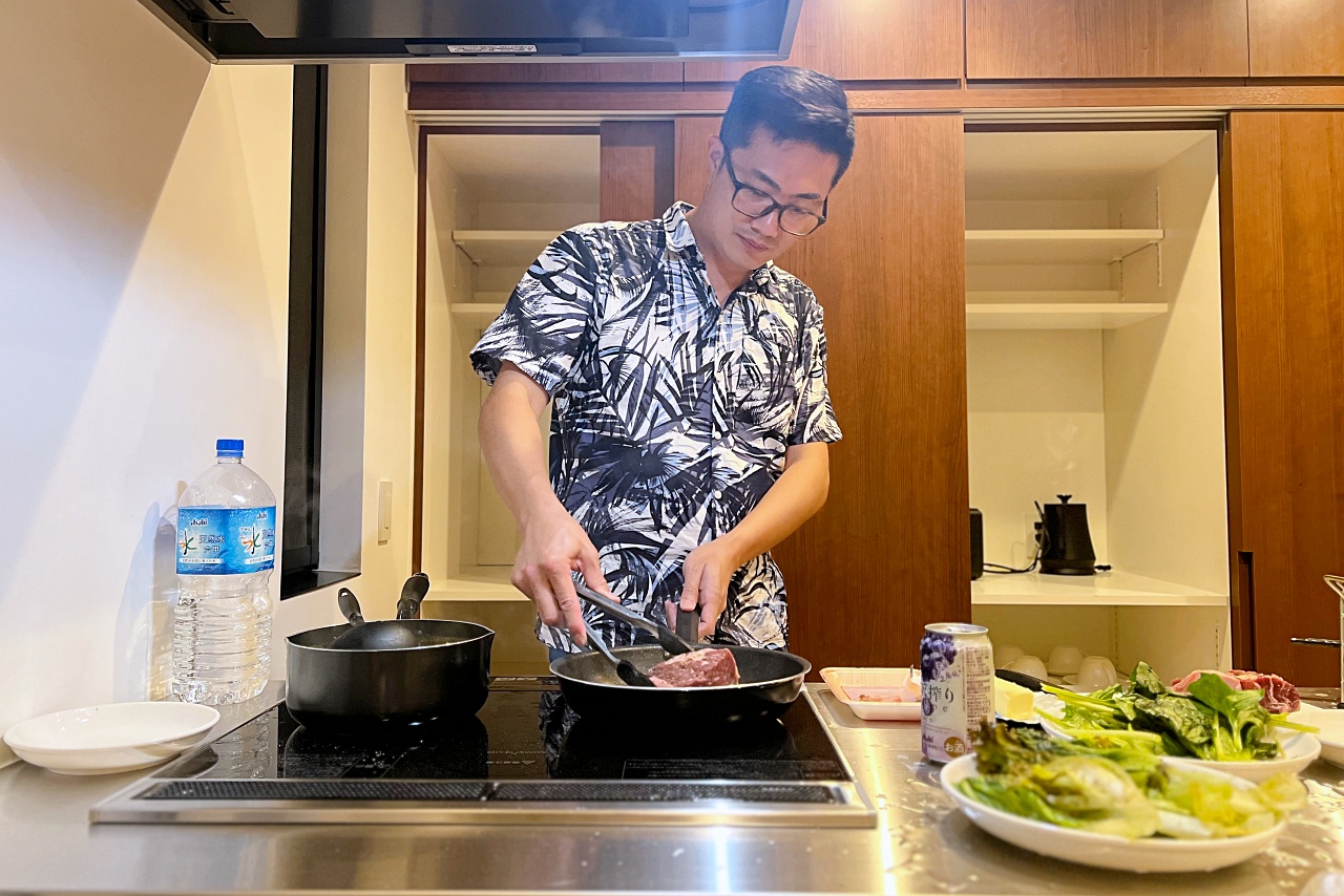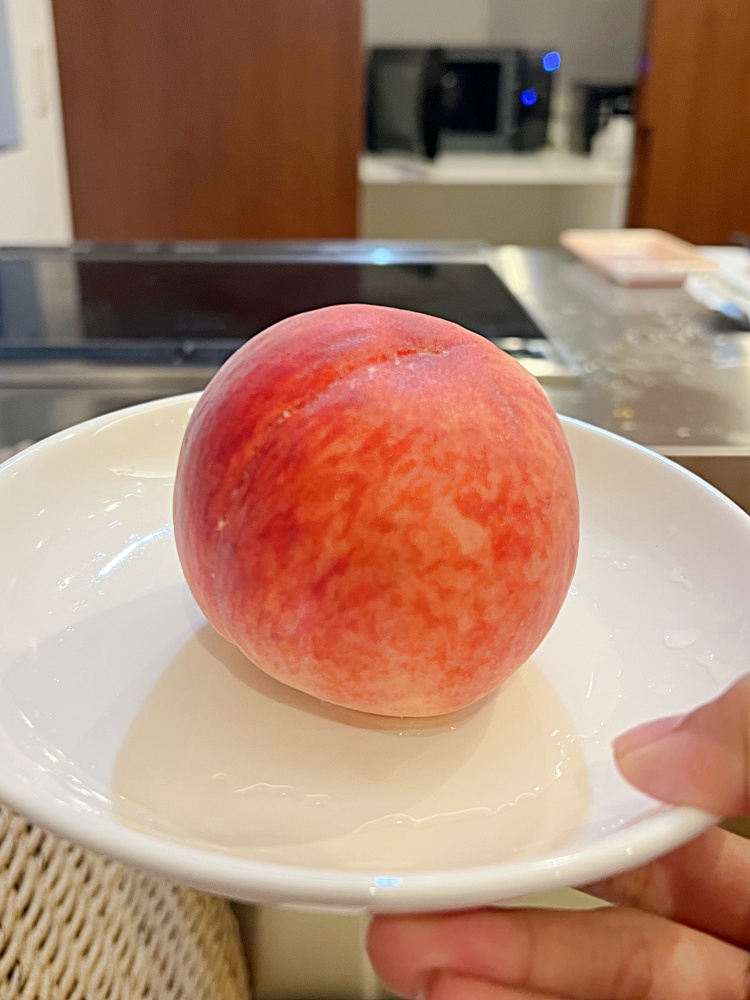 晚餐買了超市的和牛跟水蜜桃回來,今晚由漢斯下廚準備我們四人份晚餐,飯後水果的水蜜桃實在太好吃啦!香甜飽滿又多汁,趁著來日本旅遊可以多吃一點。