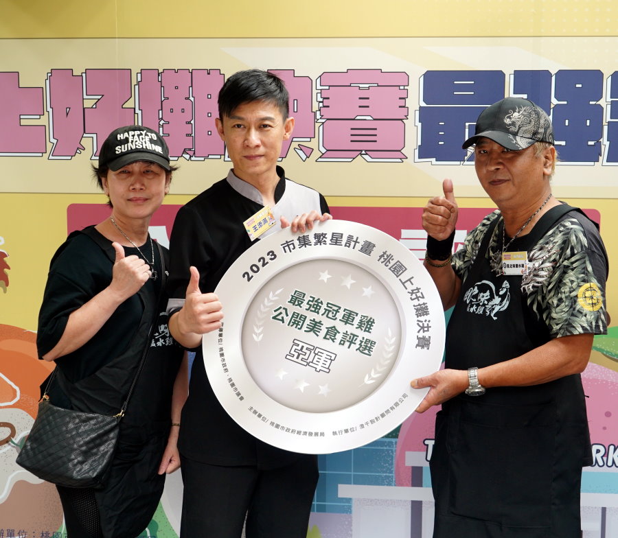 桃園市集年度評選活動「2023桃園上好攤-最強冠軍雞」總決賽來啦~~今年以公有市場常見的熟雞料理來進行評選,大口很榮幸能跟國宴主廚施建發「阿發師」、王添滿「阿滿師」一起擔任評審,共同來評選出2023的最強冠軍雞!要獲獎可說是有一定的難度,從生雞的挑選、醃漬到烹調、入味甚至煙燻過程,最後還要口味好、口感佳,不能過靭或過於軟爛,每個環節都很重要~~在激烈的競賽中,最後脫穎而出的「最強冠軍雞」冠軍是龍潭市場的龍潭傳香雞「傳香甘蔗雞」獲得,亞軍則是南門市場的風之味鹽水雞「甘蔗烤雞」,季軍是興國市場的阿香雞肉「玉米雞」,最後評審團推薦賞則由新永和市場的雞大王「鹽水雞」榮獲,其他家也有獲得優勝獎,接下來趕快跟大家分享這10間熟雞攤商的厲害之處吧!