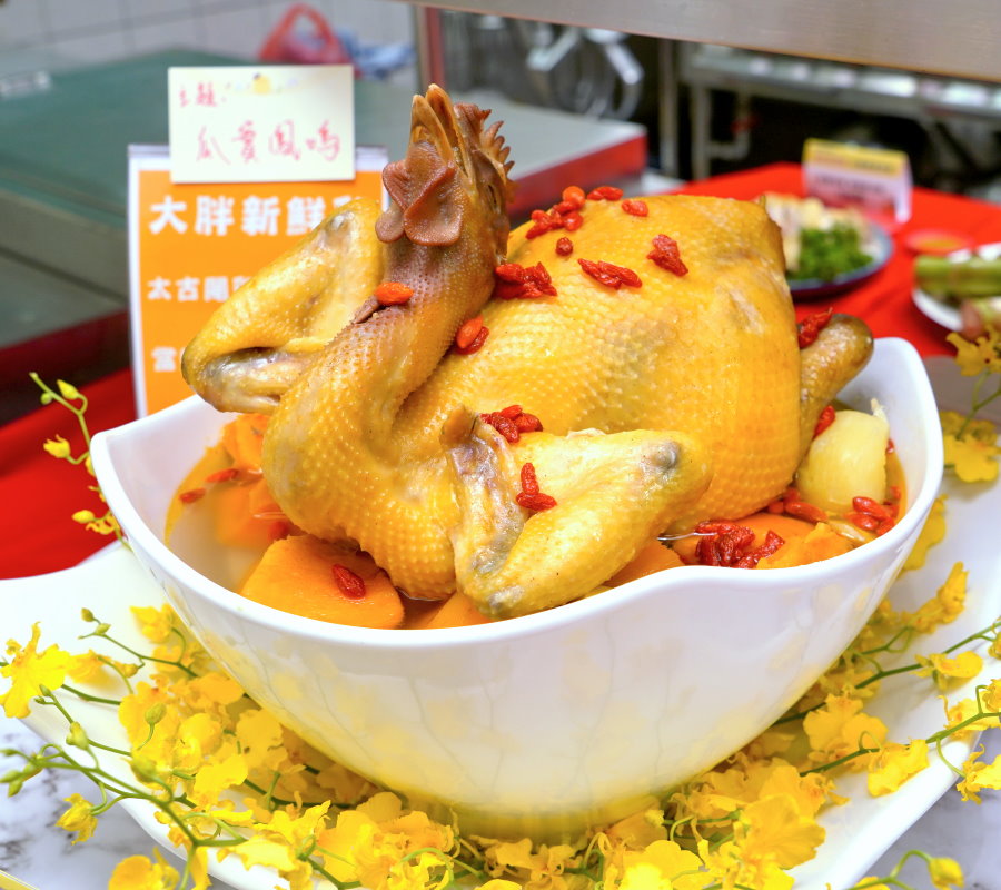 ▼位於八德市場的大胖新鮮雞「地瓜雞」是現場唯一以雞湯形式參賽的攤商,採用天然無藥物污染的台東古早雞為原料,搭配地瓜、枸杞下去熬製而成,只有簡單加鹽巴下去調味,湯頭鮮美順口,融合地瓜、枸杞、雞隻的甜味,喝起來養生又暖胃。