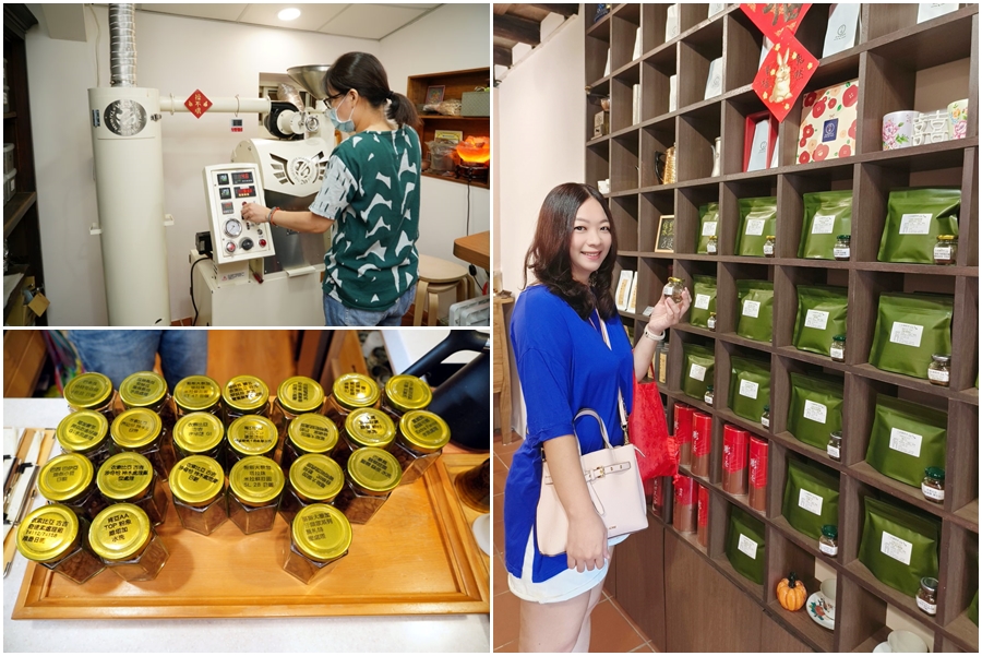 ▼後方就是烘豆室,也是店主人精心烘焙豆子的地方;前方牆面有咖啡牆,每一格都有提供聞香罐,有興趣的朋友可以先試聞,喜歡再購買~~櫃檯前方的豆子則是烘焙好的咖啡豆,種類之多,讓人眼花撩亂!