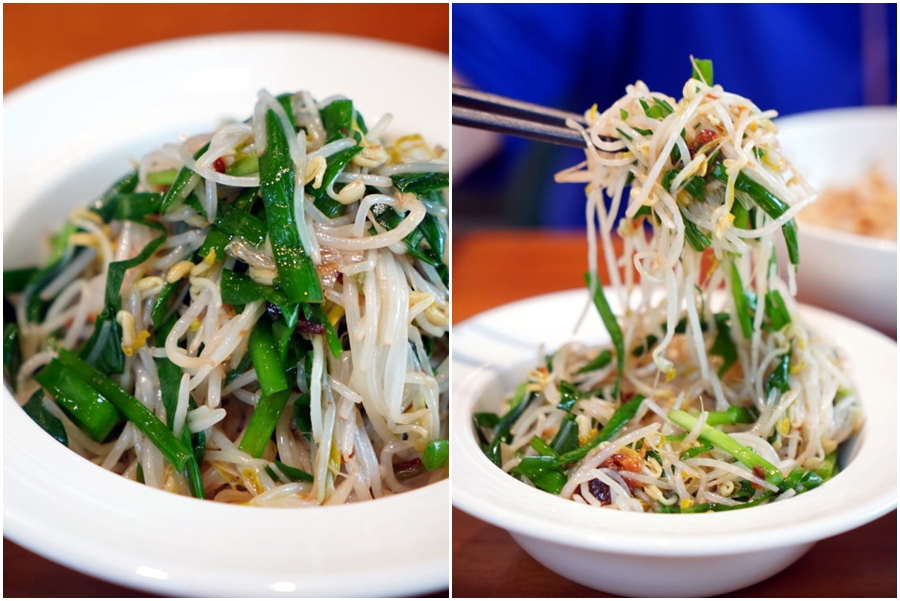 ▼有機韭菜豆芽,採用北埔冷泉有機牛奶豆芽,搭配店主人母親種植的韭菜;細嫩香滑又帶點爽脆多汁的口感,簡單搭配蔥油、油膏提味就非常好吃。
