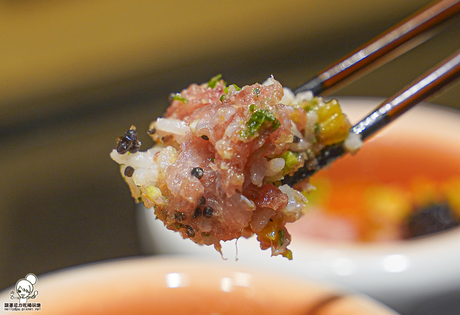 吃的時候記得順時鐘的均勻攪拌,讓整個風味完美與鮪魚肉融合