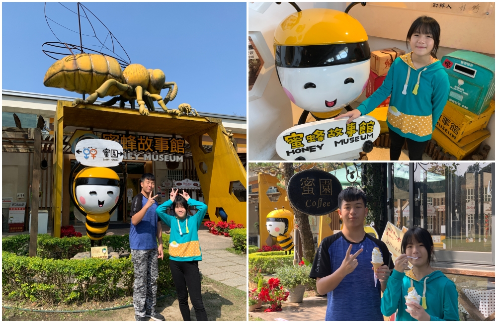 蜜蜂故事館在古坑綠色隧道的起點,免門票參觀,而且門口有很大的免費停車場,園區主要展售蜂蜜相關的農特產品,還有很多可愛蜜蜂公仔很適合合影,以及一間蜜園咖啡可以吃蜂蜜冰淇淋。