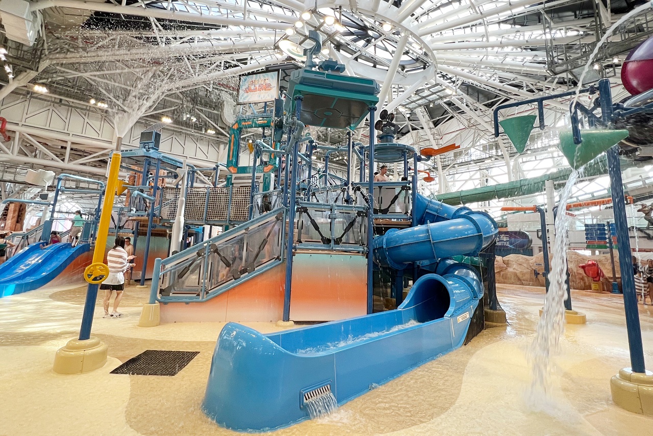 專為小朋友設計的大型水樂園城堡,有旋轉滑水道、滑梯、大水桶、雨林、水槍等,安全有趣。