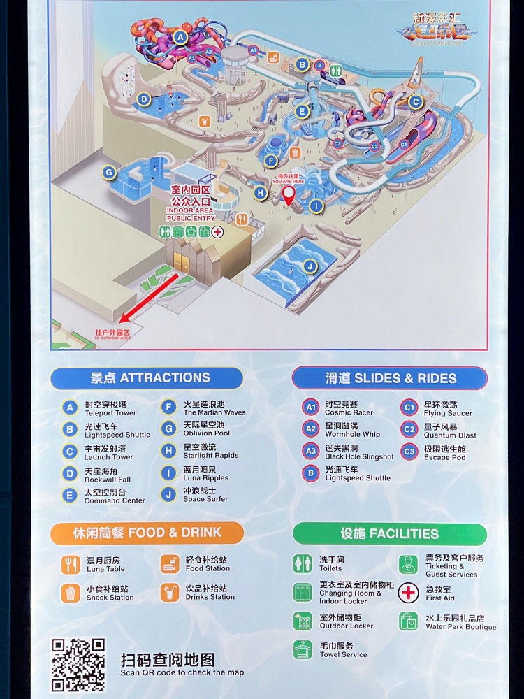 【新濠影匯水上樂園】總共分成兩大區塊:室內區、戶外區。(放大地圖)