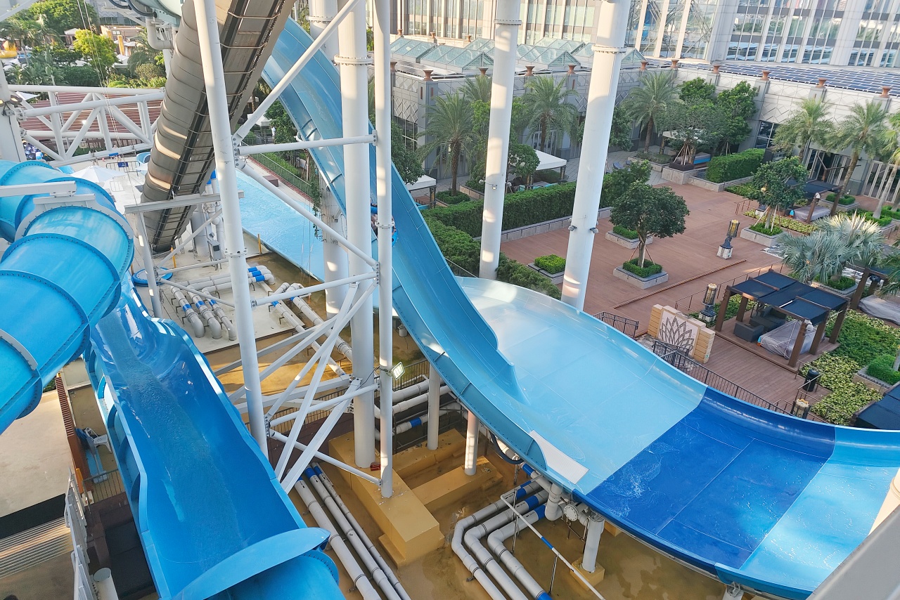 從酒店外觀就可以看到水上樂園的超巨大滑水道,光看到就興奮的想尖角了!來到澳門一定不能錯過。