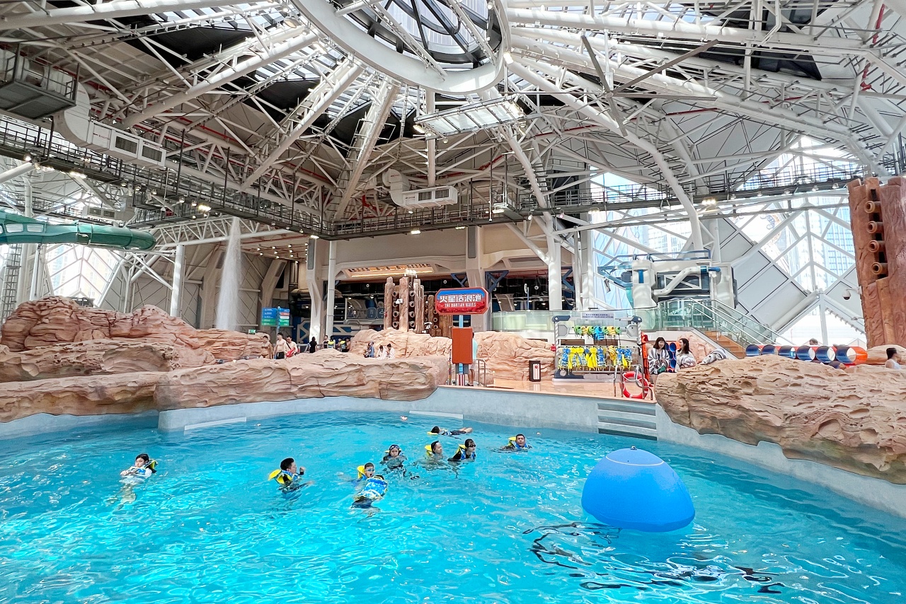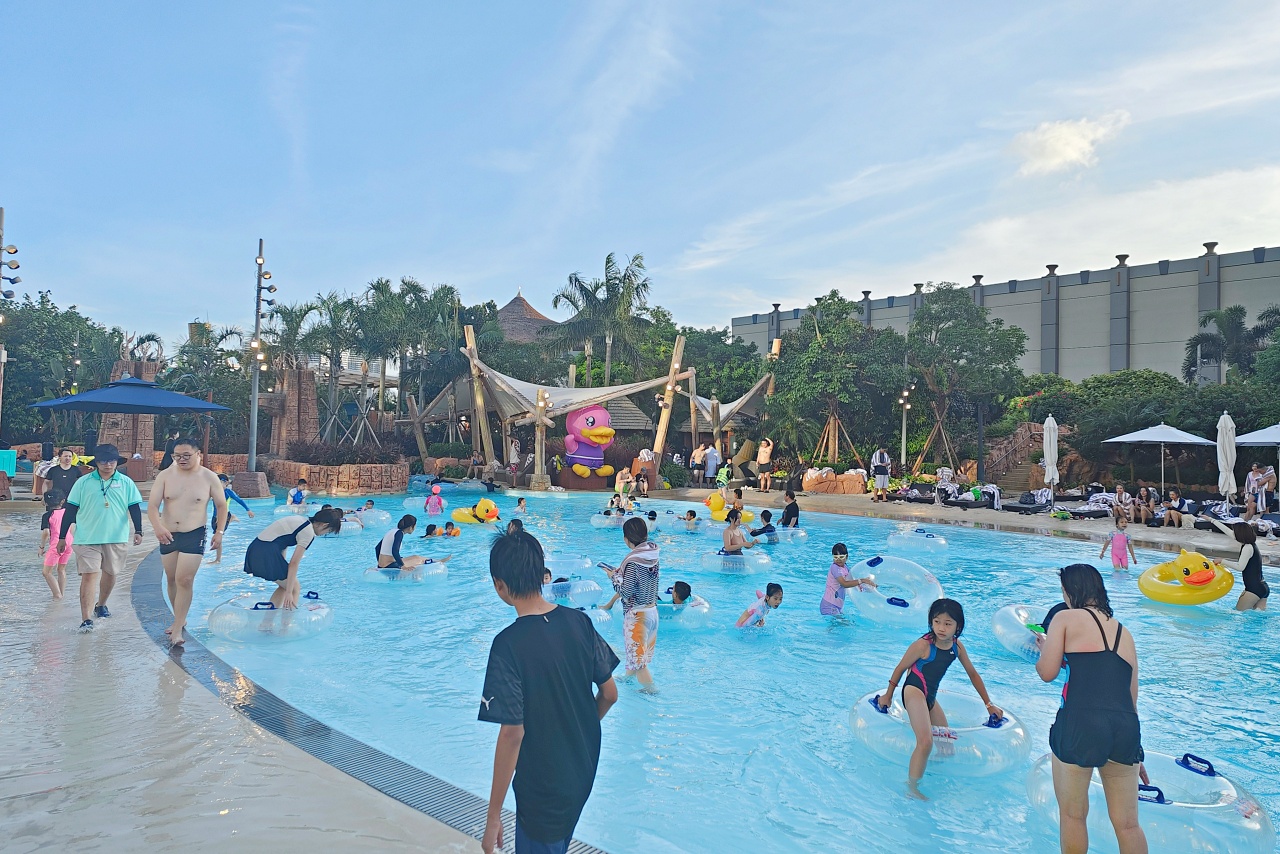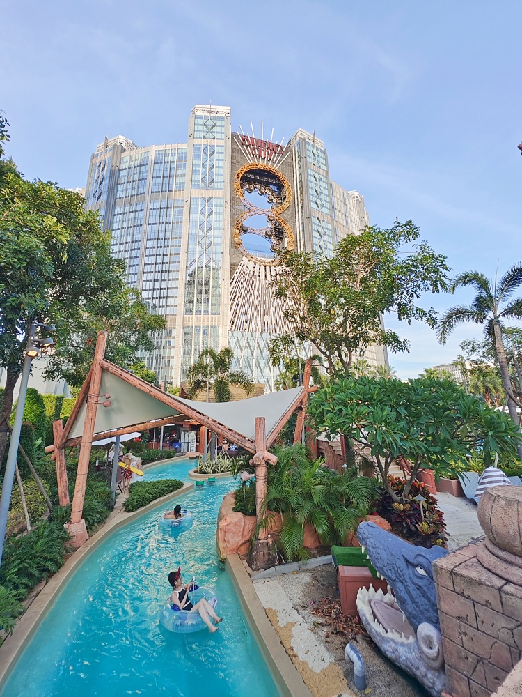 【新濠影匯水上樂園】就位在新濠影匯酒店裡面,疫情前豬飛來這裡渡假的時候還有沒有這個水上樂園,疫情期間酒店直接重新改造,把室內戶外通通連在一起,打造了澳門最大水上樂園。你以為這個只適合小朋友嗎?不不不,人家可是一家老小都很適合來玩的水上樂園耶。