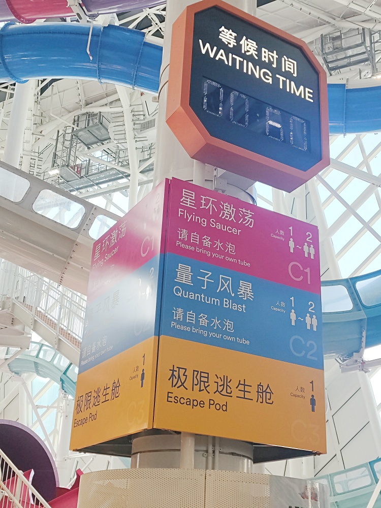 只要買一張票就能通玩,因為場域大、遊樂設施多、加上排隊人潮,非常建議一開門就趕快來玩,才能每一種都玩到。有多達25項刺激狂熱的水上設施,還有多種滑水道、造浪池,佔地高達2.6萬平方公尺。