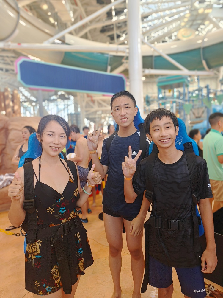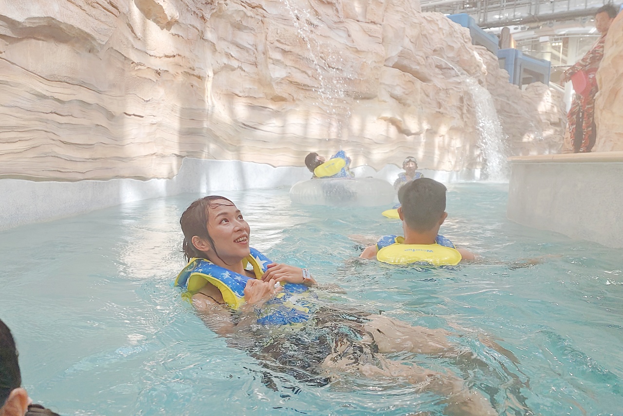 這天豬飛還有漢斯跟凱恩一家人來玩,趁著暑假的尾巴好好享受假期。每一種設施都有專人在旁邊看著,要下水前也必須穿上救生衣,在安全性上是很值得給個讚。天氣實在太熱了,我們先從室內區玩起,有冷氣空調還免去日曬,這樣的玩水方式太舒服啦。