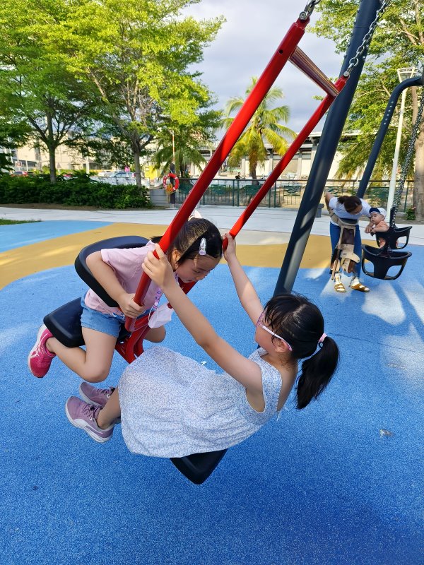 ▼連盪鞦韆也要一起,不過雙人盪鞦韆可以一起玩整個變得更有趣了!