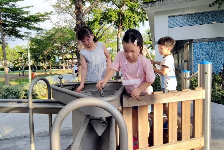 ▼這裡有許多水道、閘門,搭配起來就是一個有趣的戲水區,還可以讓小朋友練習團結合作也不錯!