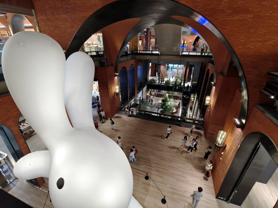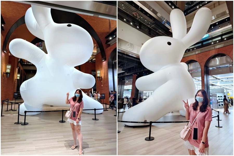 ▼由知名藝術家黃本蕊創作的「太極尼尼」就在一樓迎接著大家,高達10米的巨型兔子擺出太極的動作,整個很卡哇依啊!