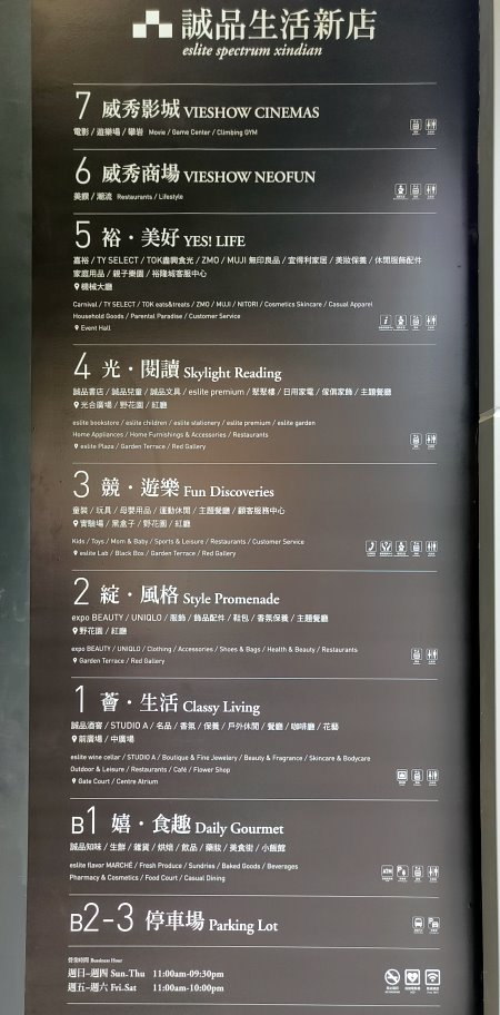 ▼B2~B3為停車場,B1為美食街,1~4樓則是誠品生活,5樓為裕隆招商店家,6~7樓為威秀商場、威秀影城,每層樓都有不同的美食餐廳,逛累了就可以坐下來享用一下美食!