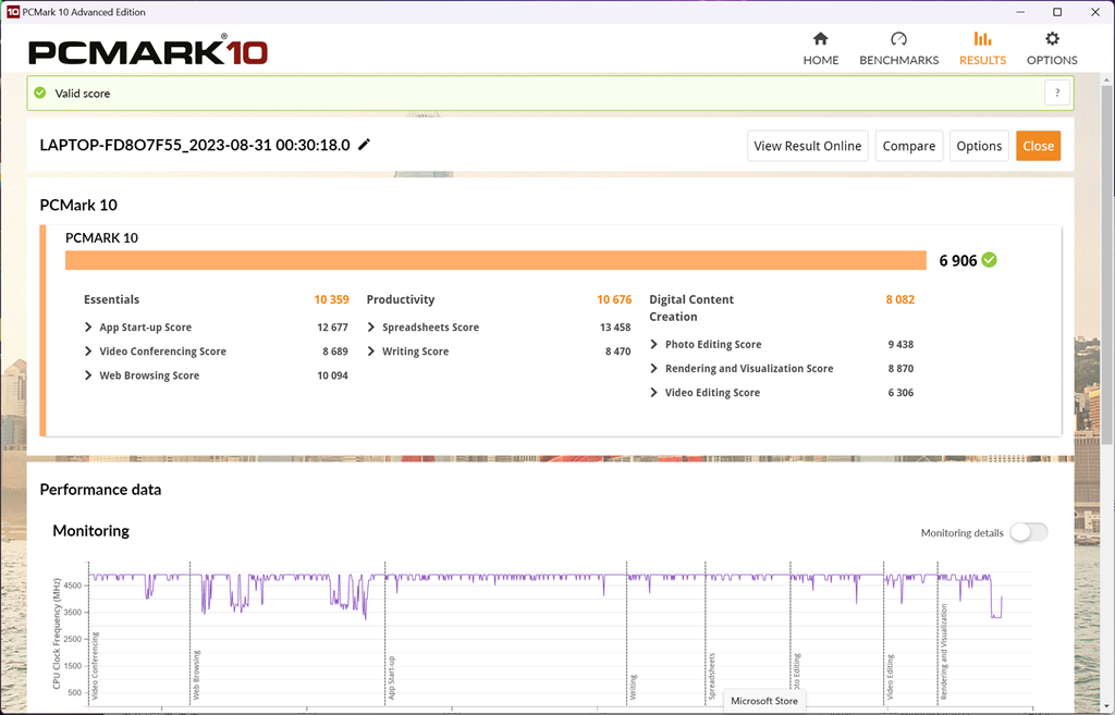 透過 PCMark 10 模擬一般使用情境測試效能表現得到 6,906 分的成績。