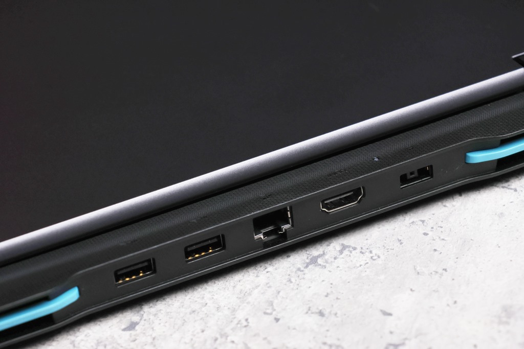 邊框加入了亮藍色的格柵裝置,低調中帶點搶眼的感覺,雖然少了 RGB 燈效的絢麗感,但對於沉穩個性的朋友更為適合,畢竟不是每個想買電競筆電都想要表現高調。