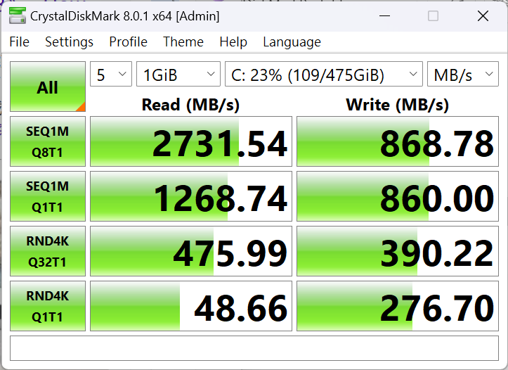 透過 CrystalDiskMark 測試讀寫速度,表現算是中上水準。