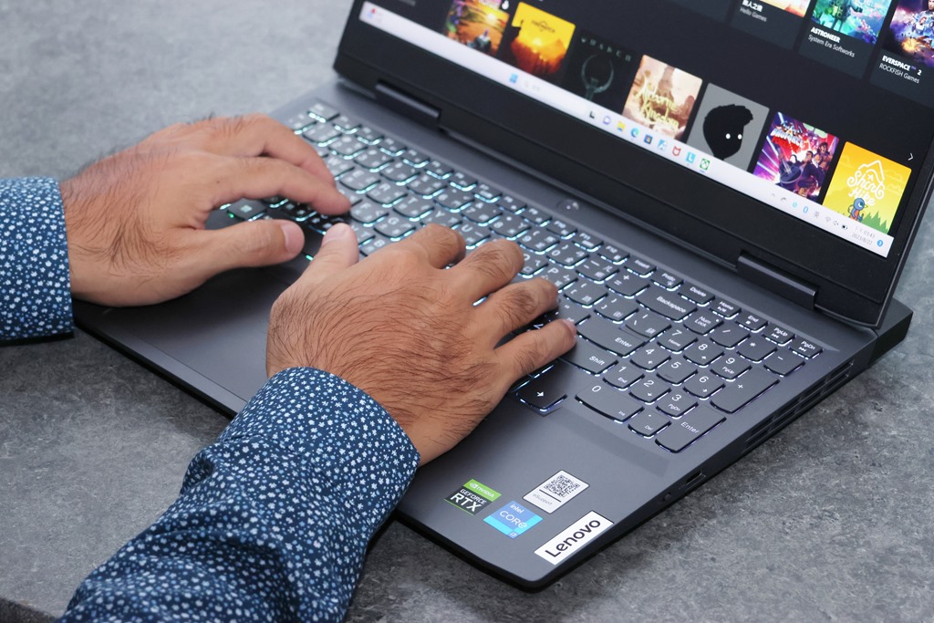 電競筆電的鍵盤設計是很重要的,畢竟有不少遊戲需要熱鍵操控,按鍵手感和回饋的反應都超重要,而 Lenovo LOQ 15 Intel 配備全尺寸的鍵盤,有獨立的數字鍵,鍵程提高到 1.5mm,在打字或按壓時的手感更好,回饋感也更立體的感覺,還具備 100% 防鍵位衝突,這樣遊戲玩到正 high 時也不會因為鍵位衝突的關係導致輸入失效而「解 high」。