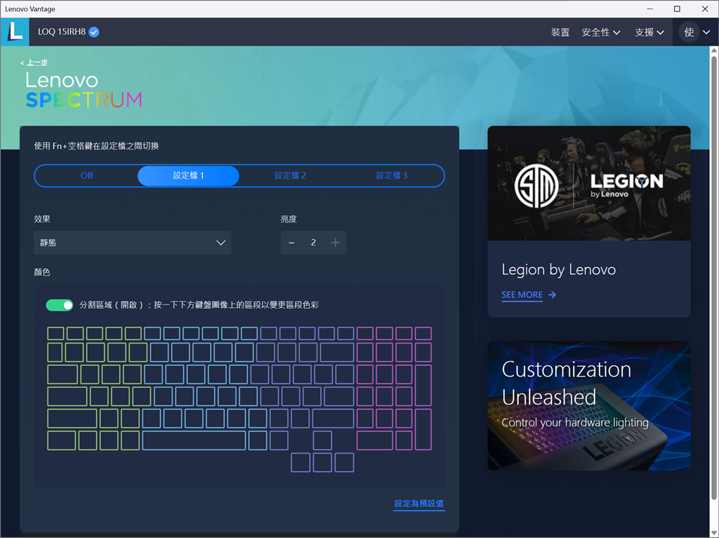 既然是 Lenovo 出品的機型,自然內建 Lenovo 實用的 Vantage 程式囉!熟悉 Lenovo 筆電產品的消費者都知道,透過 Vantage 應用程式可以快速的完成多項系統設定,要進行個人化微調也很容易。