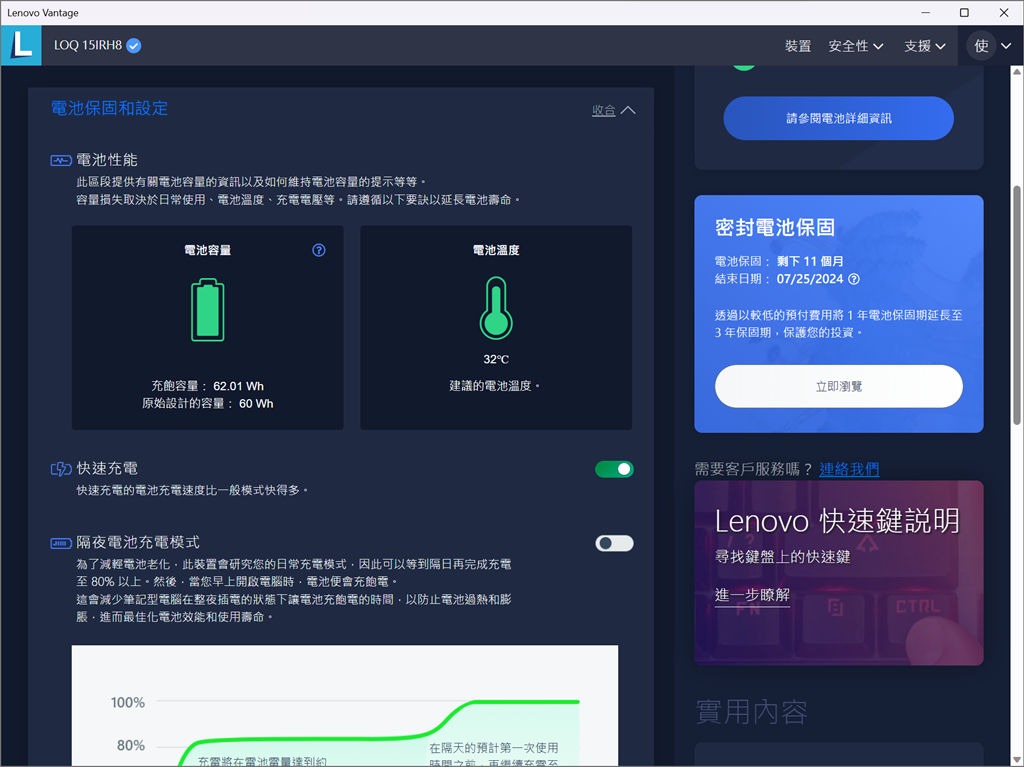 其他還有一些像是針對電池表現的細項設定、調整鍵盤顏色等等自訂功能,剛入手的人可以花點時間設定 Vantage 裡的選項,讓整台電腦更符合自己的使用需求或喜好。