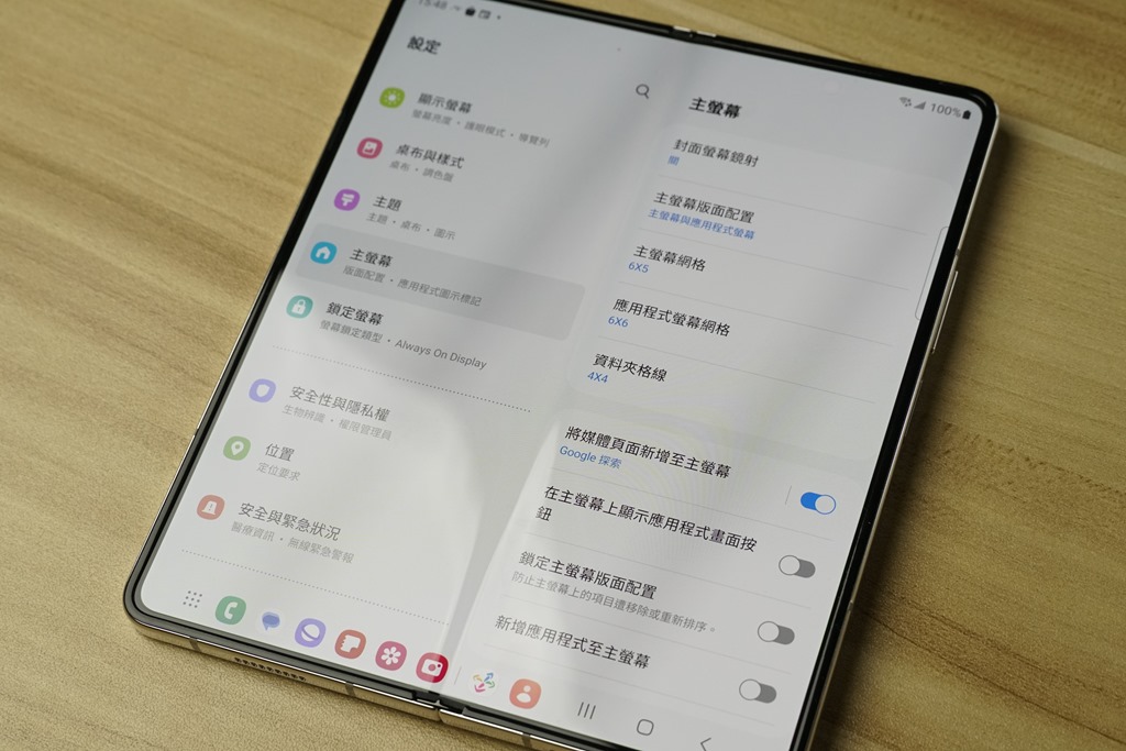 最日常的應用就在設定頁面,傳統手機在設定頁面時受限畫面大小,點選功能後就會直接跳往該功能頁面,這樣要查找功能時往往就會往返好幾次。但在 Z Fold5 上面,左方為主選單、右方為所點選功能下的子功能,使用上更加方便。